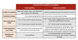 Dans tous les cas, dans le cadre des plan non qualifiés, il faudra prévoir un éventuel reliquat d’impôts à payer en septembre de l’année suivant l’acquisition dès lors que le prélèvement à la source opéré sur le bulletin de paie n’aura pas été suffisant pour solder la totalité de l’impôt dû.