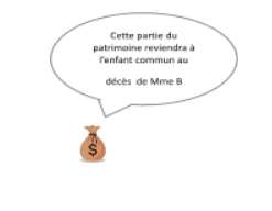 Nous sommes dans le cas où le défunt a un enfant issu d’une première union. Le conjoint survivant au jour de la succession n’aura pas le choix et recevra ¼ en pleine propriété. En effet, l’option supplémentaire de recevoir 100% de l’usufruit du patrimoine proposée aux couples mariés sans enfant d’un premier lit, ne pourra pas être choisi ici. Ensuite, au moment du décès du conjoint survivant, l’héritage sera partagé entre ses propres enfants. Prenons l’exemple de Monsieur et Madame B mariés sous le régime légal. Monsieur a un patrimoine valorisé 1 million d’euros. Il a un enfant d’un premier lit et un enfant commun avec Madame B. L’inégalité peut se créer si Monsieur B décède en premier. En effet, une partie de son patrimoine sera transmise à sa nouvelle épouse qui sera ensuite transmise à leur enfant commun. Dans ce cas, l’enfant d’un premier lit ne recevra pas la même chose que l’enfant commun.