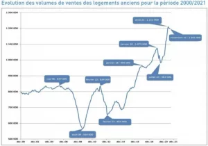 Malgré l’inflation et la hausse des taux, le nombre de ventes immobilières ne cesse d’augmenter. Comme le montre le graphique, le marché de l’immobilier français reste résiliant.