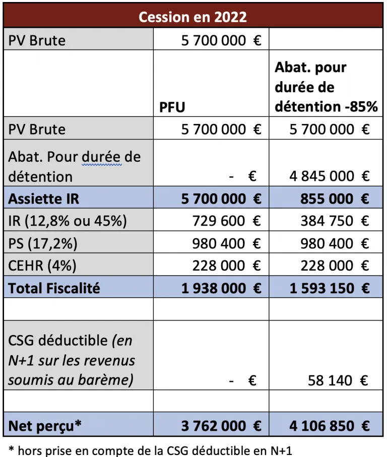• Respect des conditions pour l’abattement renforcé de détention de titres de PME depuis plus de 8 ans