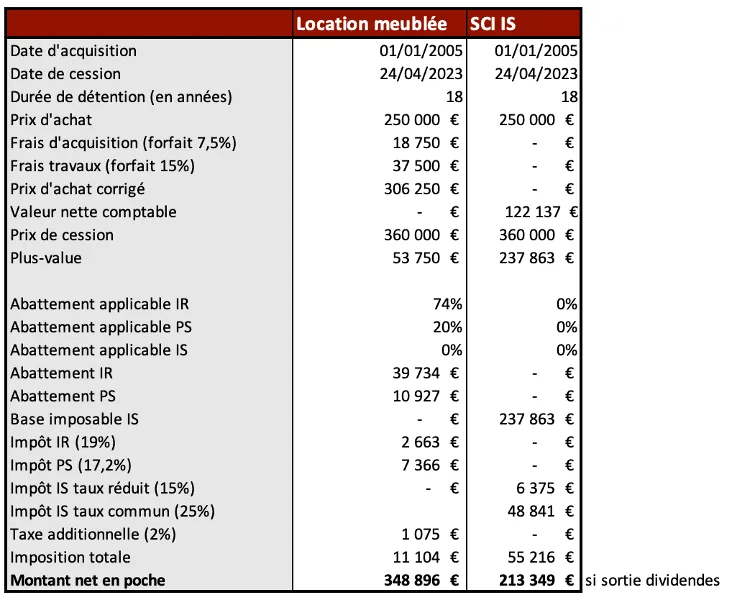 De plus, il est à noter une différence en cas de cession du bien car le régime LMNP permet de bénéficier de la plus-value des particuliers (et donc d’une possible exonération selon la durée de détention) tandis qu’avec le régime LMP, c’est la plus-value des professionnels qui sera appliquée.